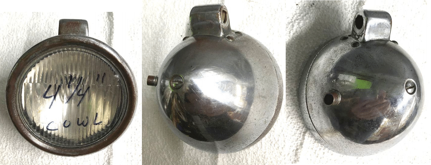 GM I think, Chrome housing with Glass Lens, " dia. Has post mount and cover for the