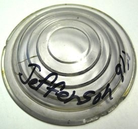 lens with metal trim and tits on side, 2 1/2" dia., very nice (Have 1) |