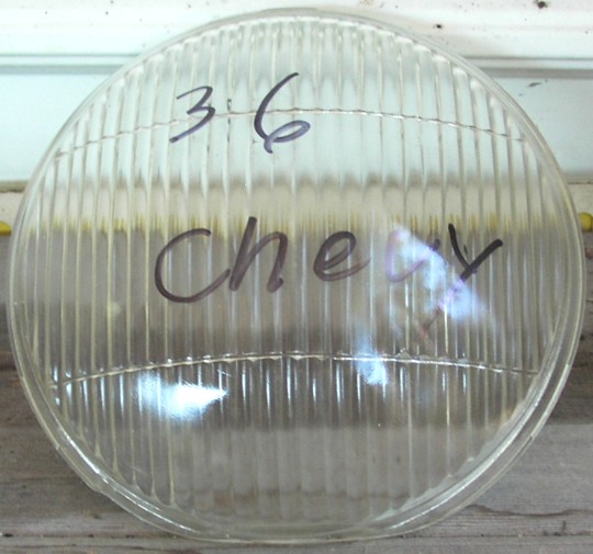 | LX132 | 35-39 | Lens, Clear Glass Headlight, Fits 36 Chevy Car, 36-39 Chevy Trucks, 36 Federal Trucks, 37-38 GMC Trucks & 37 IH Trucks, 7 1/2" x 7", New Condition (have 0) |