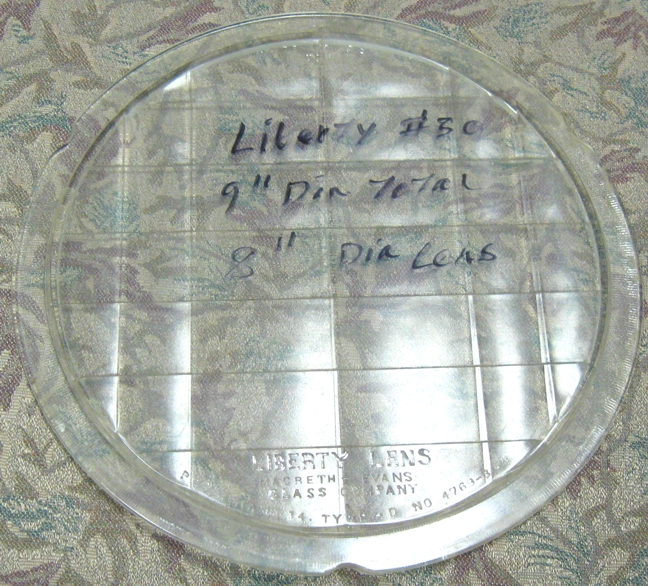 | Liberty Lens #30 | ? | Lens, Clear Glass Headlight, Fits?, 9" diameter total with 8" lens x flat, Used - Good Condition (have 0) |