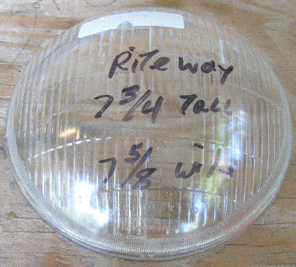 | RiteWay #15 | ? | Lens, Mopar?, Clear Glass Headlight, 7 3/4" Tall x 7 5/8" Wide x 2 1/4" bubble, Used - good Condition (have 1) |
