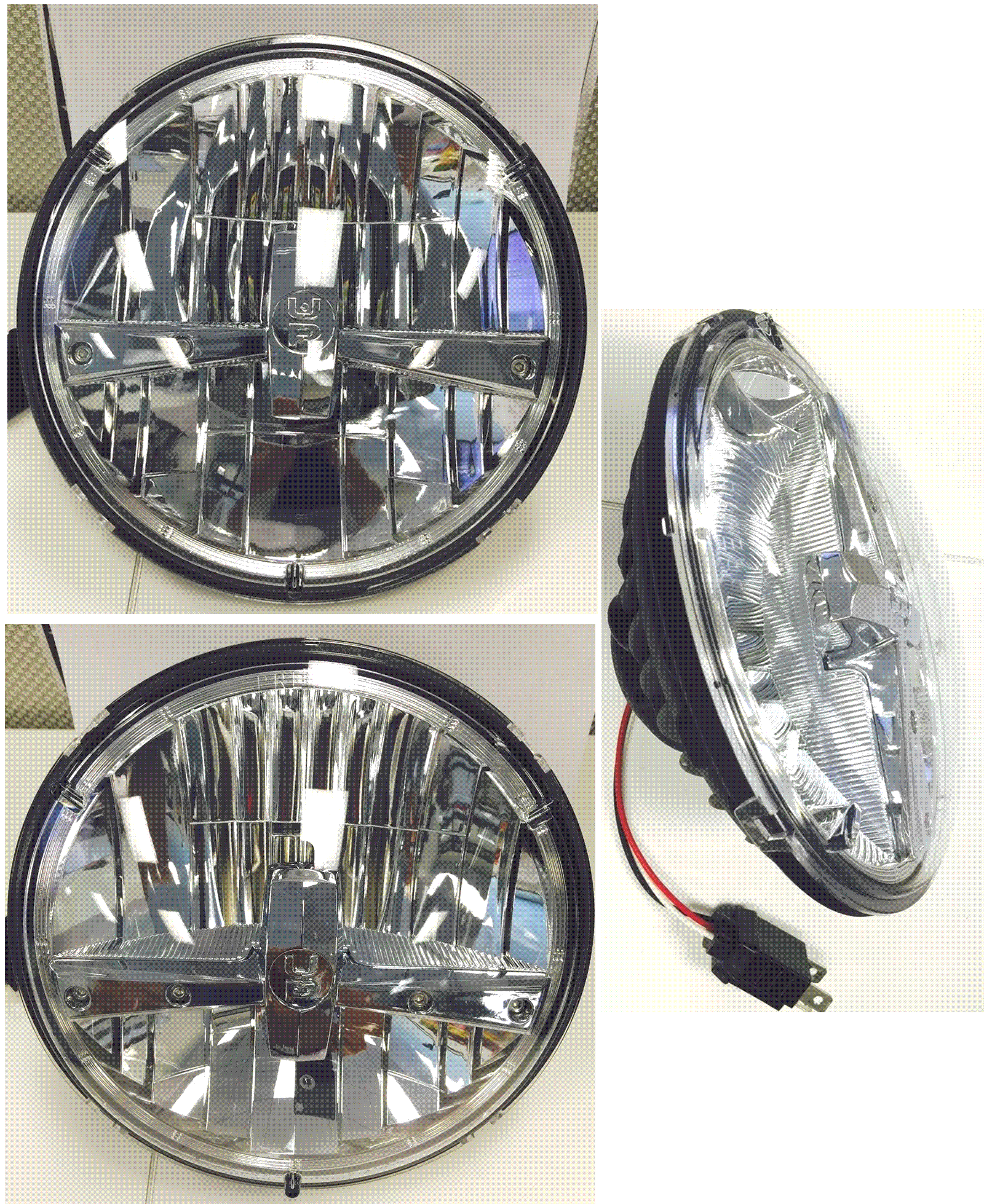 | 31391 | All with 7" | 5 high Power LED Headlight Bulb Assembly, Crystal lens and Chrome Metal reflector, 7" diameter, with 5 High Power LED's (Low beam is 1 x 15 Watt LED 1.7 Amps 500 Lumins & High Beam is 4 x 3 Watt LED's 2.6 Amps 1100 Lumins), 12 Volt bulb, SAE/DOT FMVSS 108 compliant, Fits all headlights with 7" bulb, These Are way cool!! (In Stock) |