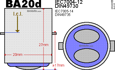 Single Element / Single contact, 12 Volt, 35 Watt, 50cp, Standard size - 1 15/16" tall, 2-pin base, pins directly across. Specifications (See Fog Light Bulbs) |