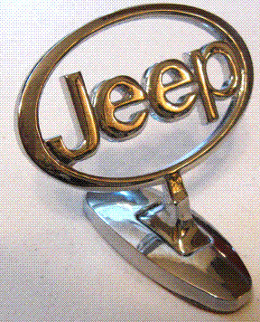 | Small Jeep | All | Hood Ornament | Jeep Cars and Trucks, 3 1/8" x 1 7/8" oval, Stands 2 3/8" tall, Base is 2 1/2" long x 1 1/8" wide max with stick-on Tape, New - Chrome Metal (See Hood Ornaments Page - Willys Jeep) |