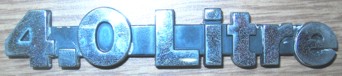 | 4.0 Liter | ? | Script | Script, bright aluminum on plastic stick-on, 3/4" tall x 4 5/8" long (Have 1 used) |