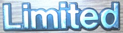 | Limited | ? | Script | Script, bright aluminum stick-on, 3/4" tall x 3 1/4" long, used - good (Have 2) |