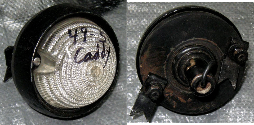 | Guide F-57 | 47-48 | Parklight | Assembly, glass lens, Fits all models, 2 1/2" diameter and sticks out 1 3/8", Very nice condition (See Older Caddy Page) |