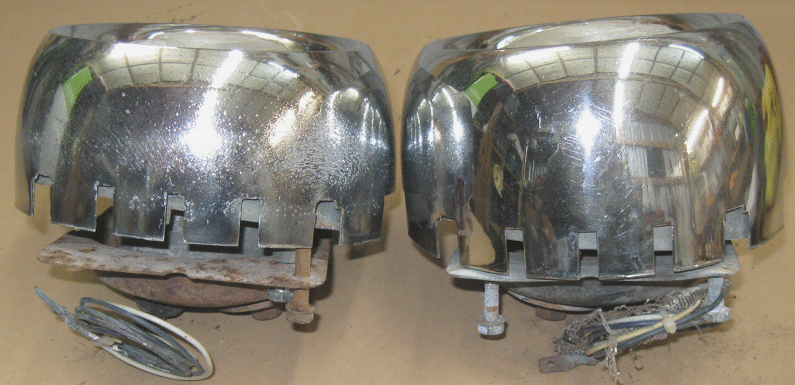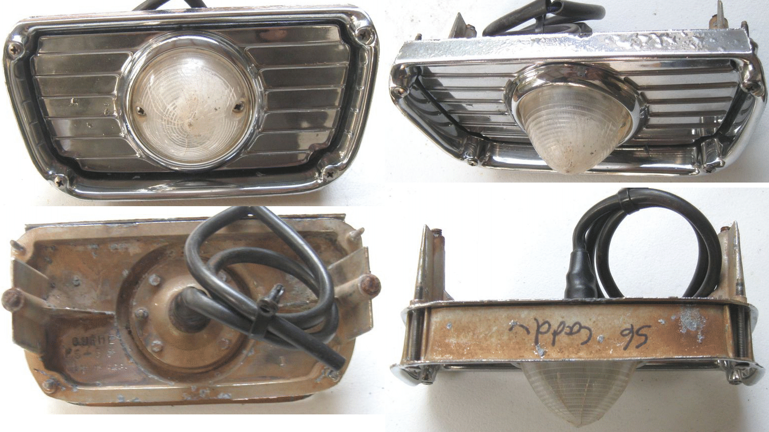 | Guide | 54 | Park light | Assembly with Chrome wing, RH, Lens and bezel is 3" dia., Used - lens broken - Chrome has some pits but still shines (have 1) |