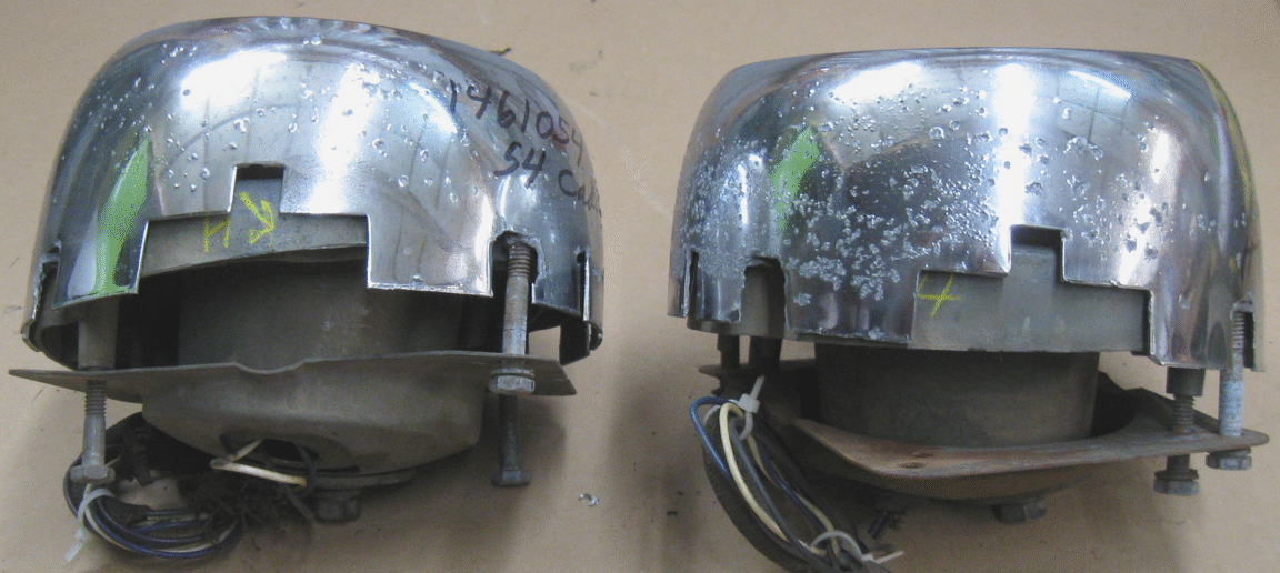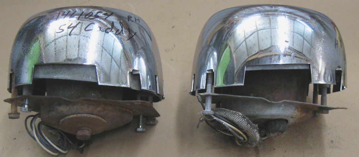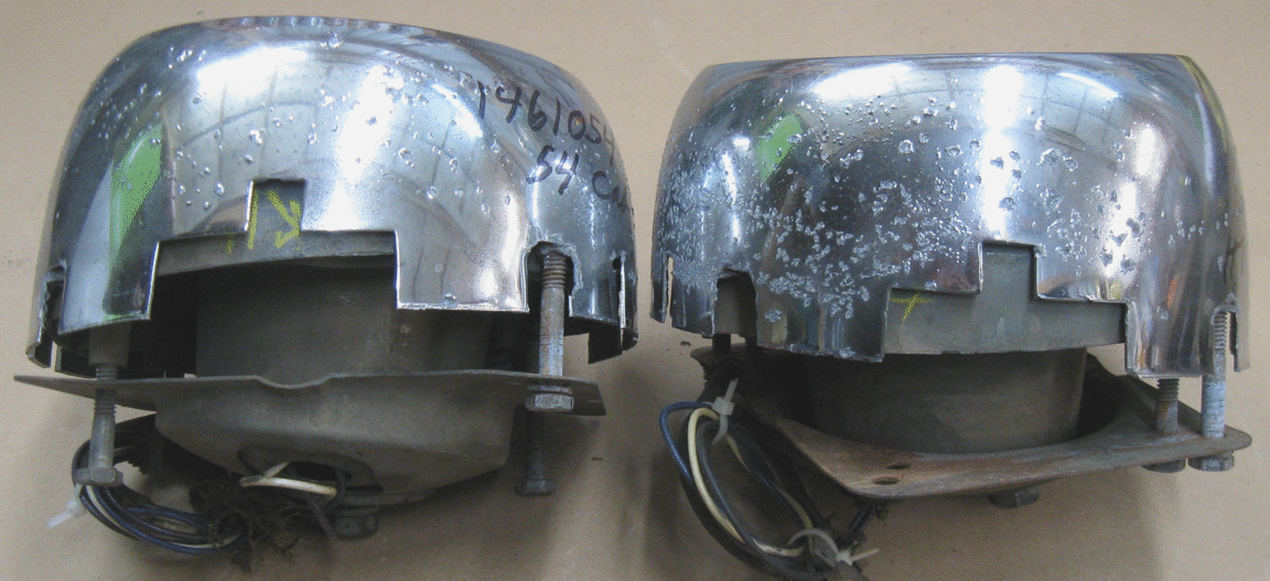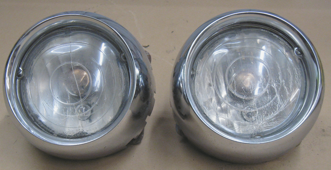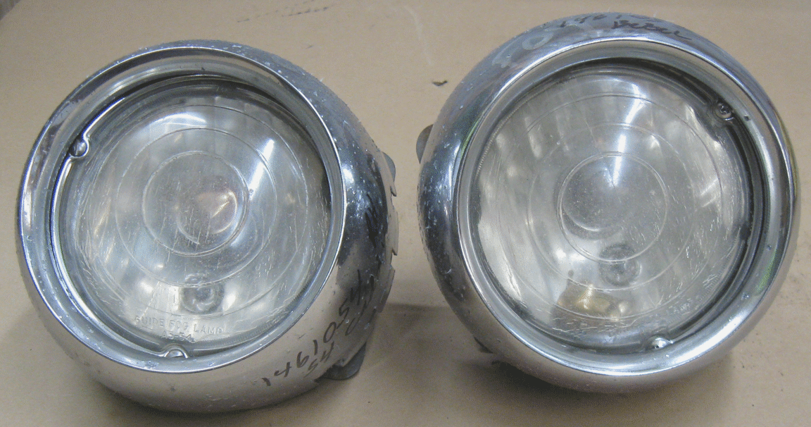 | Guide | 54 | Park light | Assembly with Chrome wing, LH, Lens and bezel is 3" dia., Used - Good lens - Chrome has some pits but still shines (have 1) |
