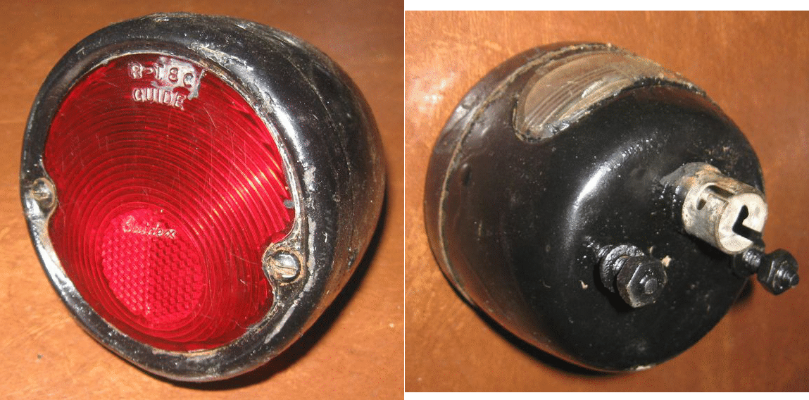 | Guide R-T8 | 54/55 | Taillight | Assembly, Fits GM trucks, 3 5/8" dia. x 2 3/4" deep taillight, LH with license lens, Plastic lens, Used - Original Looks very nice, (Have 0) |