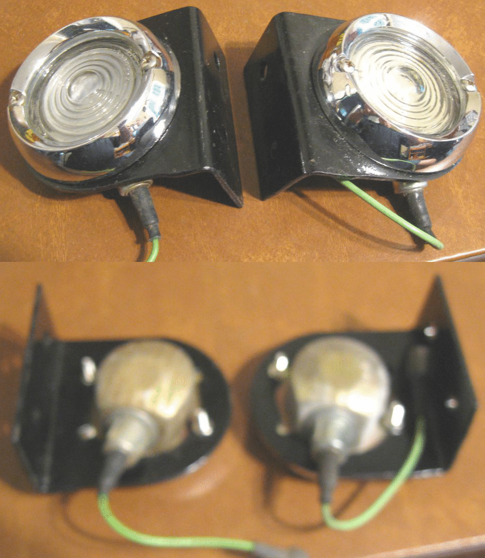 56-80? | Backup | Assembly with Brackets, Fits GM Stepside Pickups, NOS, Guide B4-54 or B4-71 Glass Lens, 3-3/8" (2-1/4" lens) diameter x 11/16" tall bezel. 1-1/4" deep below bezel, these are hard to find brackets, very nice (Have 0) |