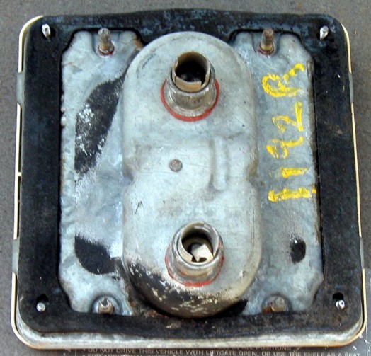 | 3 GM 1Z | 83-? | License Lite | Assembly, License Light, 2 1/8" x 1 7/8" x 1" tall, Chrome, Twists into sloted hole 13/16" in diameter with wide slots extending 1 3/16", Used - Good condition (have 1) | ||