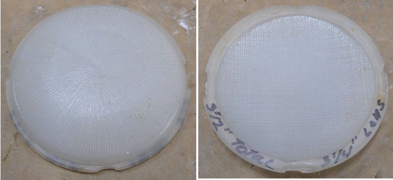 lens 1 with circular lines & 1 smooth frosted, Half tube shaped, 7" x 1 3/4" x 7/8" tall,
