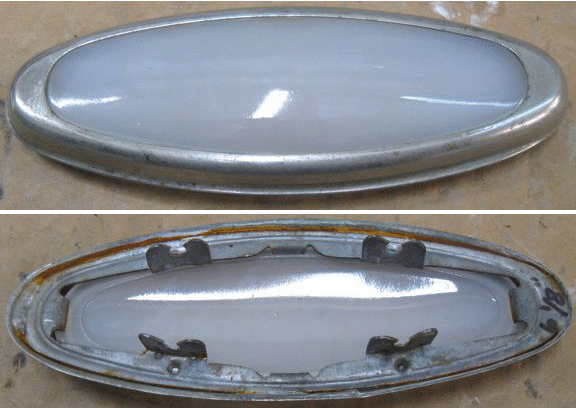 shaped Glass lens with oval bezel, 7" x 2 5/8", Look nickle plated (Have 2) |