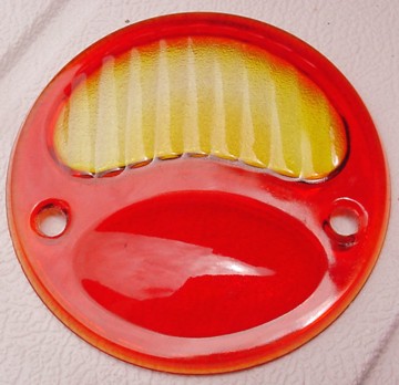 | A1007US | 28-31 | Taillight | Glass Lens, Model A & Pickup (Says STOP in Amber, in the Red glass) 3 1/2" dia. x 3" lens (In Stock ) (I can put Blue Dots in these in the bottom Red portion $30 ea.) |