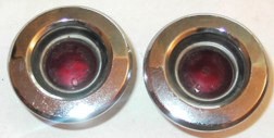 | 62D | 62 | Taillight | Assembly, Dodge Dart & Polara, Lower Taillight, 6 Inches Diameter, Used - chrome good with minor pits; 1 with super chrome and broken lens (have 1) |