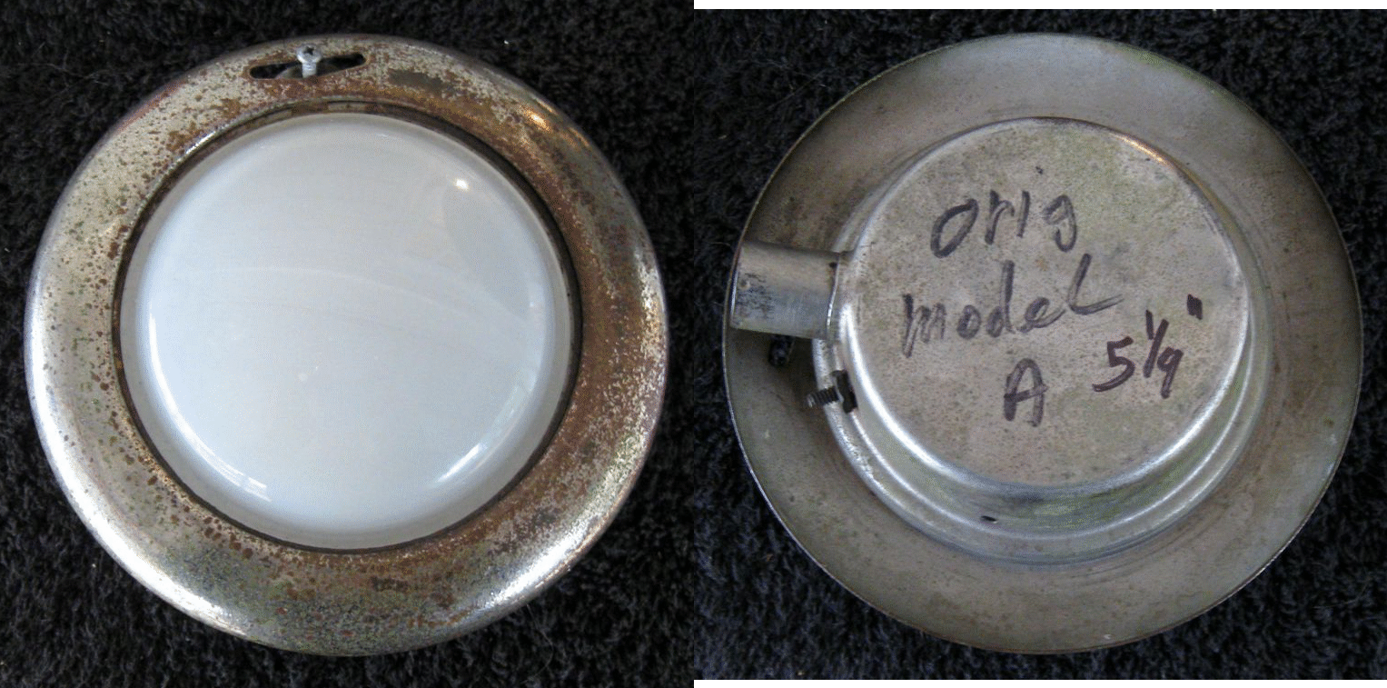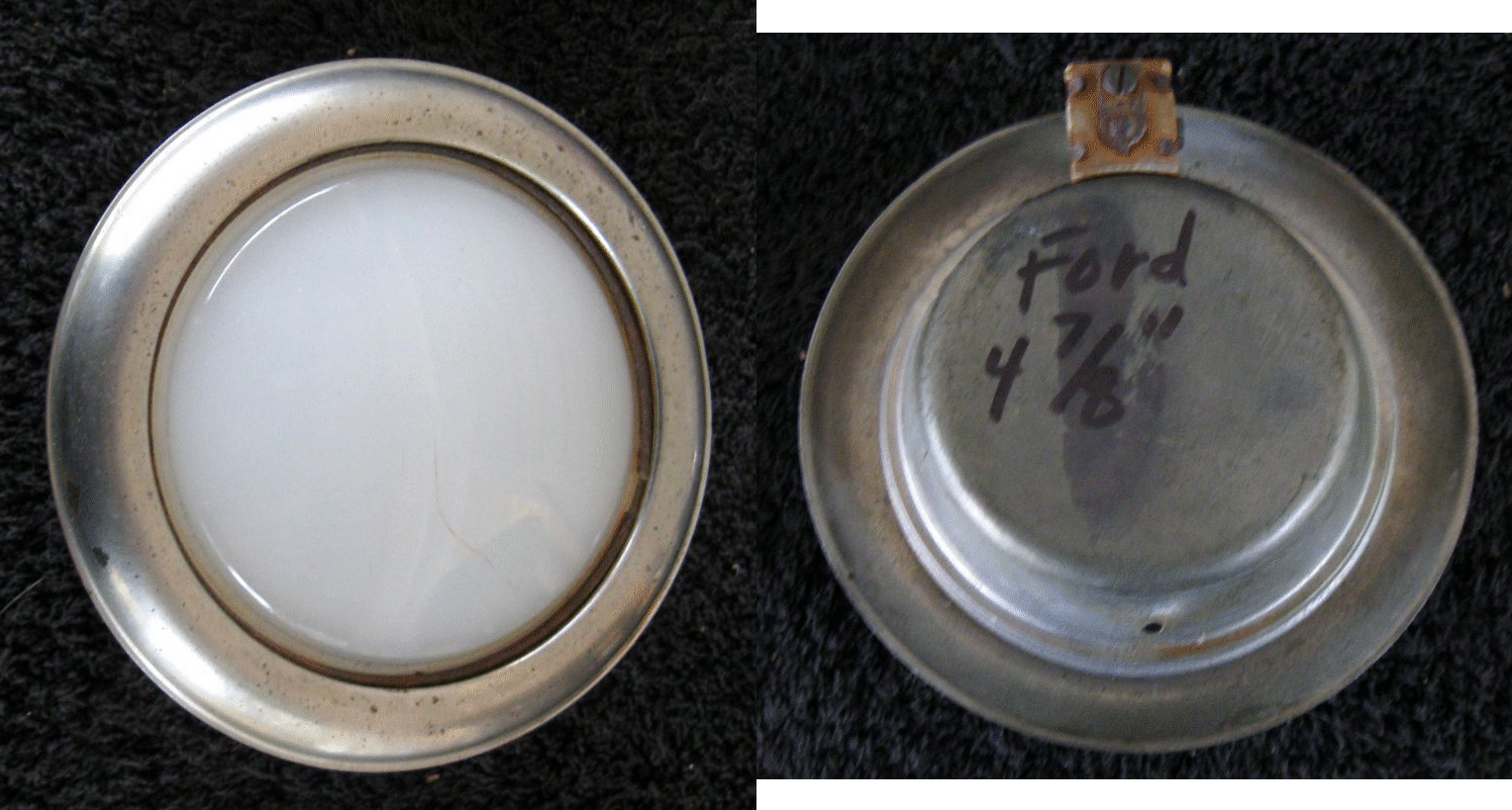 Plated Bezel, Glass Milky Plain Lens, 4 7/8" Diameter with 3 1/2" glass lens, 6 or 12 Volts - specify, New and very nice
