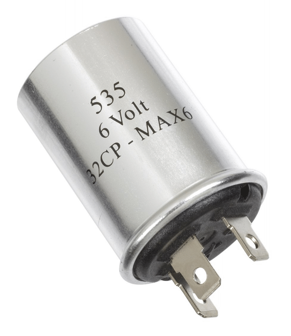 6 Volt | Bussmann NO.535 5.2 Amp Thermal Flasher, 6 volt thermal flasher, operates correctly under variable load, uses the heat build-up to flash circuit on and off, features audible click to alert driver that directional signal is engaged, does not indicate lamp outage, New (Have 9 in Stock) |