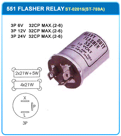 | Grote 44530 or Signal Stat 175 | 12 Volt | Flasher Assembly, Electronic, Up to 12 lamps, 2 prong, May be used (Have 1 each Grote and Signal Stat) |