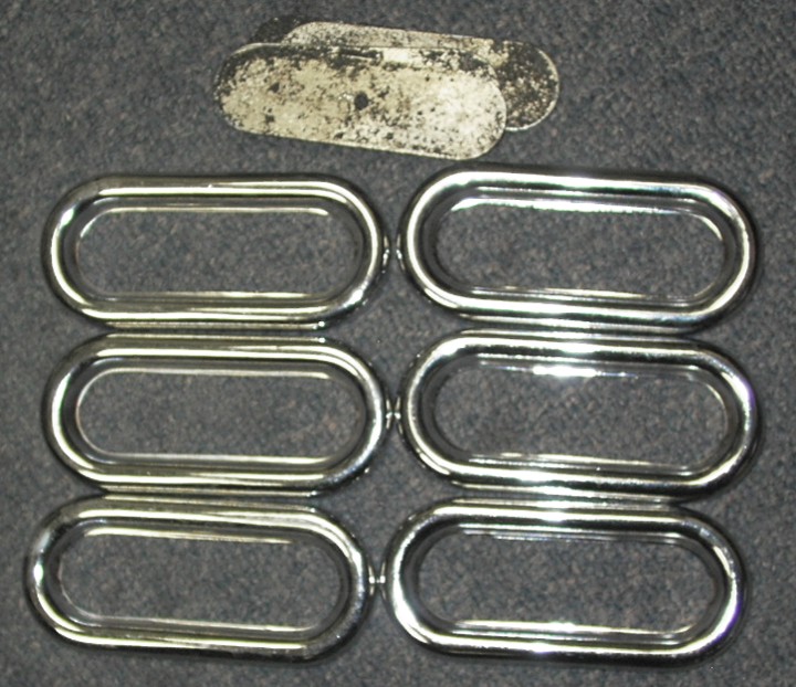 | Port Hole | Set, Chrome Port Holes, Metal, 4 3/4" x 2 1/8", Set of 6, New old stock (have 1 set) |