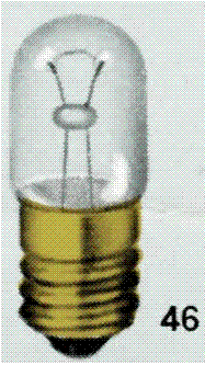 | 46 | Instrument | Single Element miniature / Single contact, 6 Volt, 1.6 Watt, Instrument light bulb, Edison Miniature Screw base, pins directly across, 3/4" tall Specifications (Have 17) |